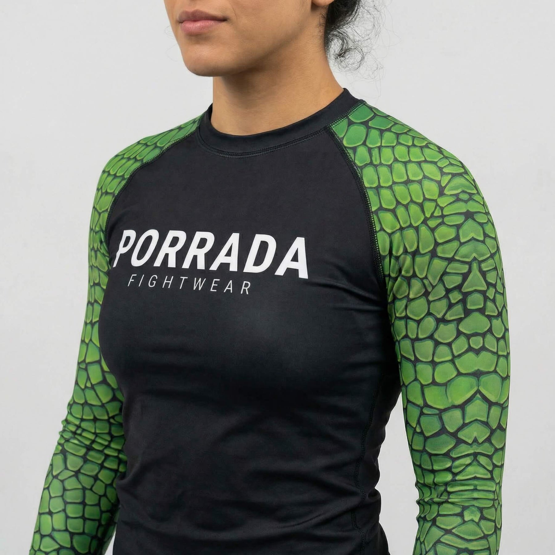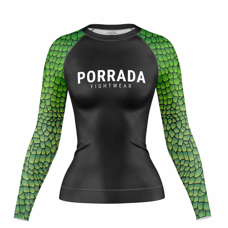 Competition-ready women’s Croco long sleeve rash guard for BJJ and MMA